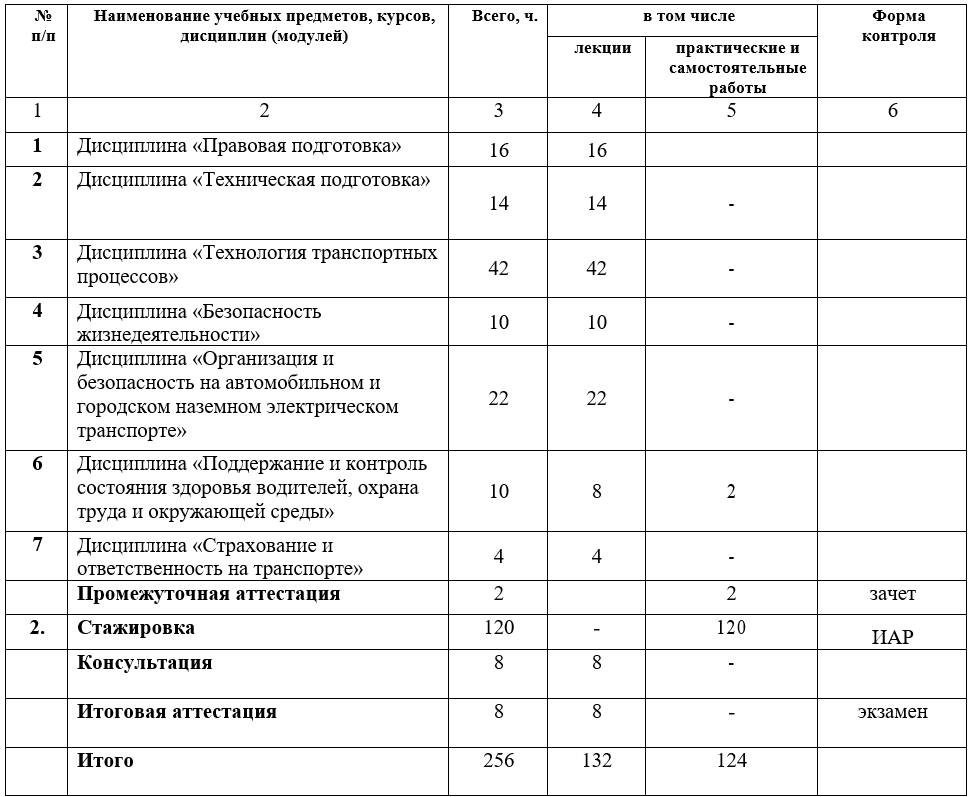 Срок обучения – 256 часов