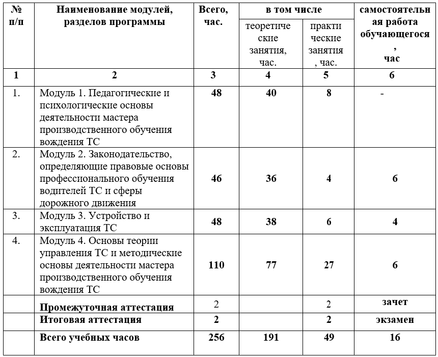 Цель обучения: получение компетенции, необходимой для выполнения нового вида профессиональной деятельности, приобретение квалификации мастера производственного обучения вождению транспортных средств соответствующих категорий и подкатегорий