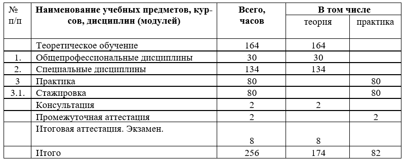 Срок обучения – 256 часов