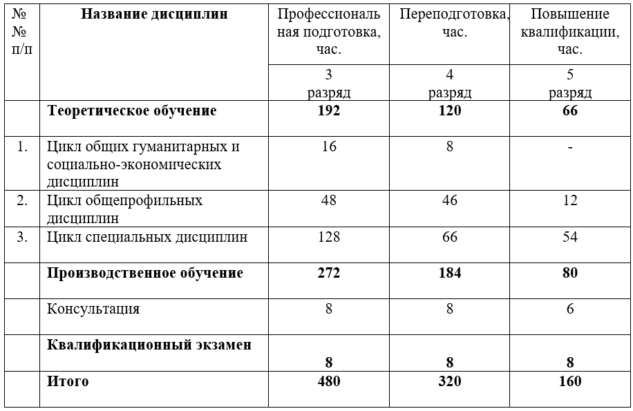 Форма обучения – с отрывом от производства (очная).