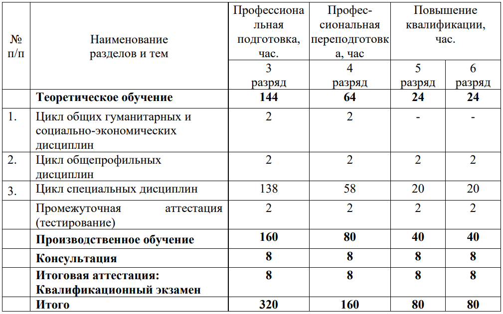 Форма обучения – с отрывом от производства (очная).