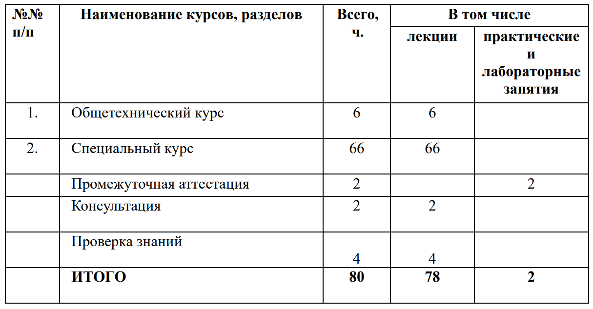 Форма обучения – с отрывом от производства (очная).